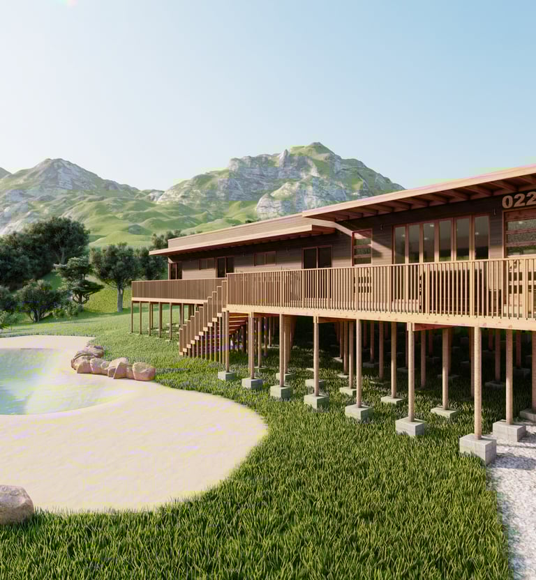 Diseñamos desde complejos de cabañas y alojamientos rurales hasta propuestas urbanas, siempre priorizando la eficiencia constructiva, el confort y la identidad local. Cada proyecto es pensado para atraer turismo, generar valor económico y ofrecer experiencias memorables.”